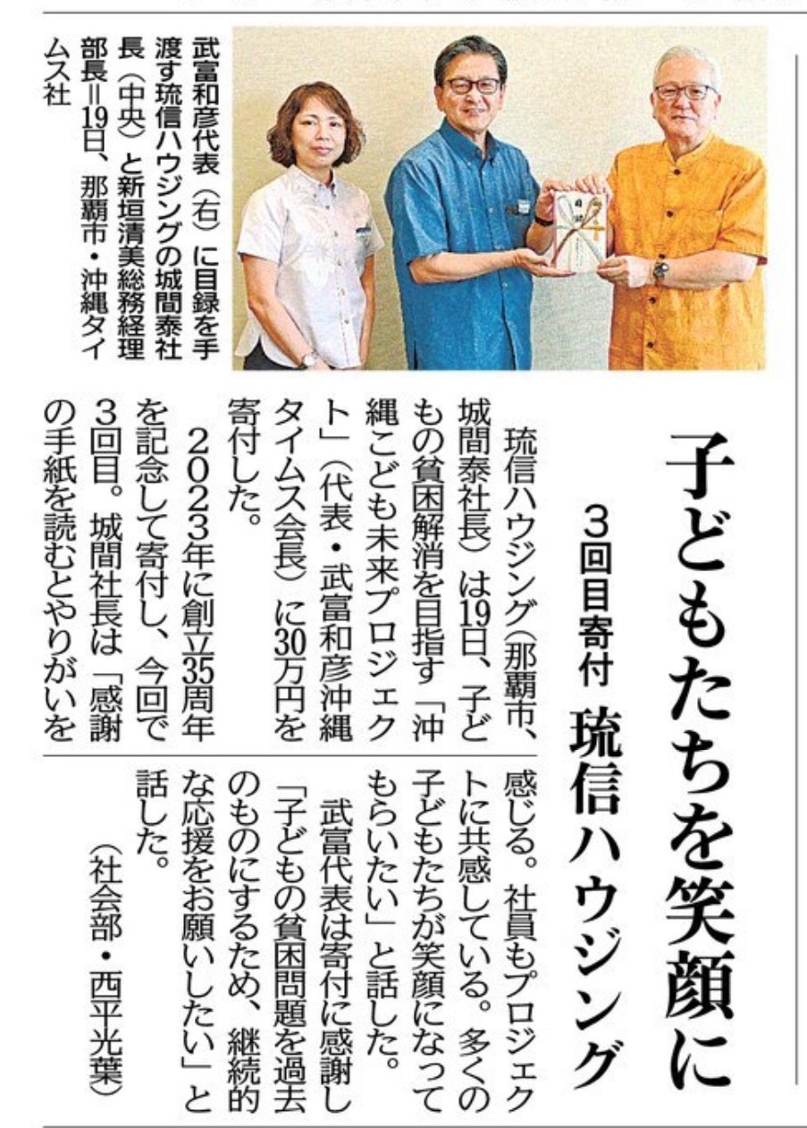 「沖縄こども未来プロジェクト」へ寄付
