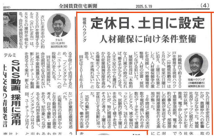 202505ー全国賃貸住宅新聞 定休日、土日に設定