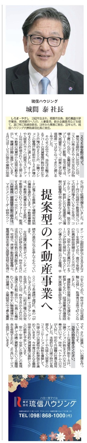 20250101ー琉球新報記事 トップインタビュー